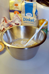 0.3 l vlažnej vody (optimálna teplota pre kysnutie je 32° celzia, ale pozor pri 45° celzia začínajú drožďové huby (droždie má naozaj hubový pôvod - sú to huby rádu Saccharomyces cerevisiae) umierať )