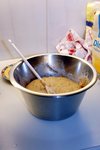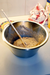 vzniknutú hmotu vymiesime na cesto (miesiť asi 10-15 minút). Niekedy sa cesto miesi