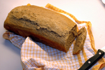 chlieb vyberieme z rúry a formy, zabalíme do mokrej utierky, aby vrch pekne zmäkol. Ak sme hladní, tak túto fázu vynecháme. Čerstvý, teplý chlieb natretý kravským maslom chutí výborne, vyskúšajte!