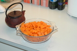 Tekvicu nakrájame na menšie kocky. Tekvicová sezóna začína na jeseň a končí v zime. Preto ak