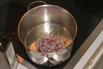 Dáme ju do hrnca a popražíme na olivovom oleji.