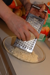 Posypeme nastrúhaným syrom a polejeme prevarenou smotanou.