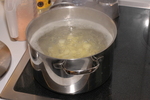 A dáme variť zemiaky do vriacej a osolenej vody.