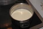 Dáme variť smotanu a zároveň rozohrejeme rúru na 160 °C.