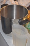 3 kg kryštálového cukru (cukor zväčší objem vody o polovicu svojej váhy: 3 kg cukru teda vytvoria 1.5 litra dodatočného objemu)