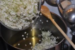 | Ak nemáte dostatočne veľký hrniec môžete objem bazy, ktorá sa namočí do sirupu zmenšiť, tým, že odtrhnete kvety zo stopiek (napr. ak varíte 7 l sirupu v 10 l hrnci).