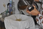 | Bazu a citróny vyberieme sítkom a precedíme cez látku (použil som bavlnenú plienku), aby sme sirup zbavili aj tých najmenších nečistôt.