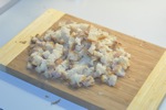 | Do nakockovaných surovín pridáme roztlačený cesnak.